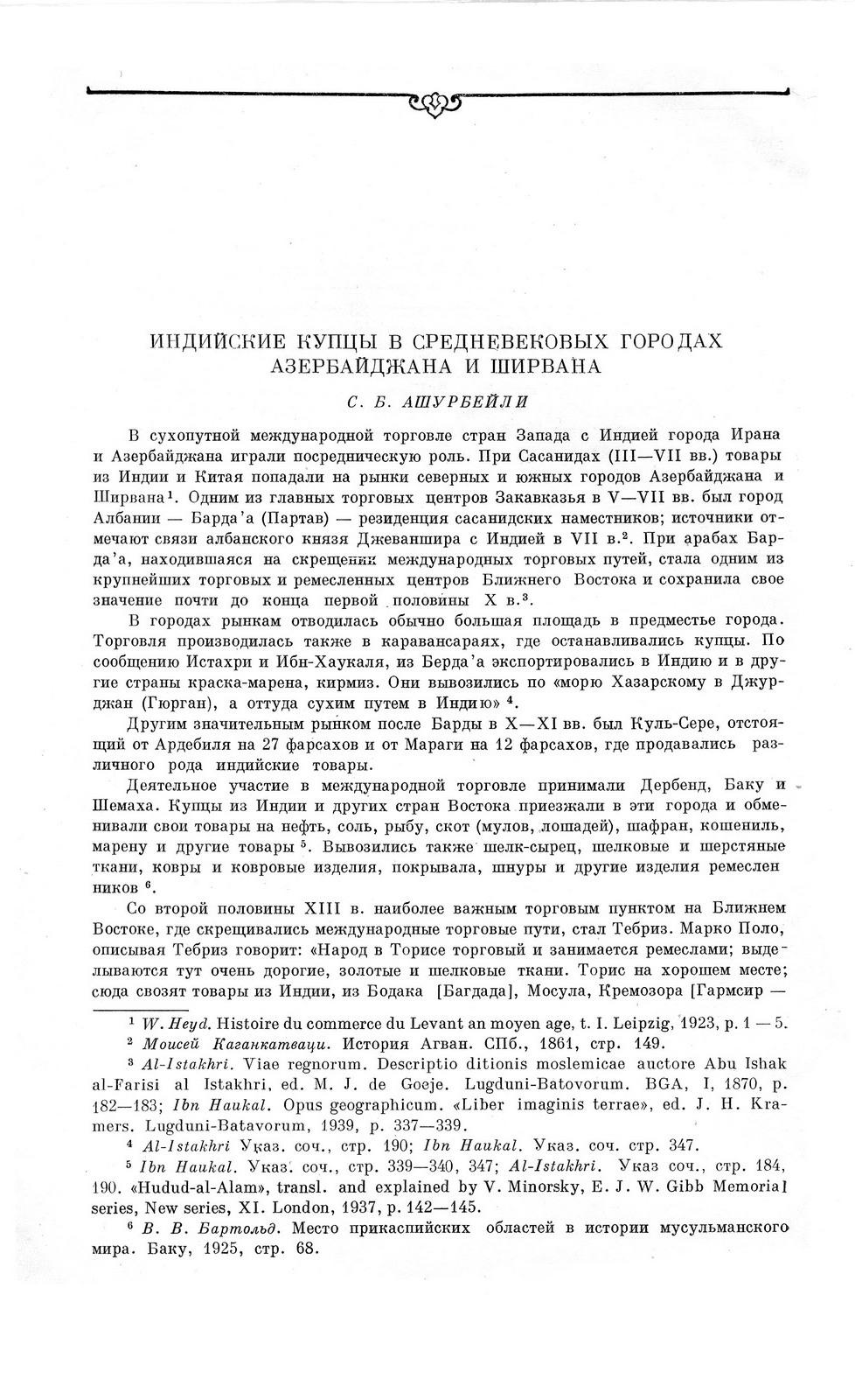 Индийские купцы в средневековых городах Азербайджана и Ширвана